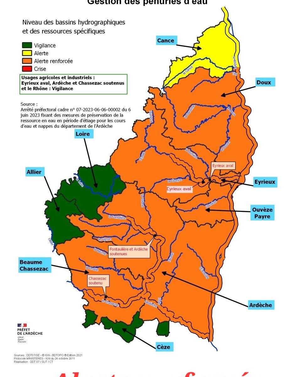 Désormais, le bassin versant de Beaume-Chassezac est placé en niveau de gravité « alerte renforcée ».
