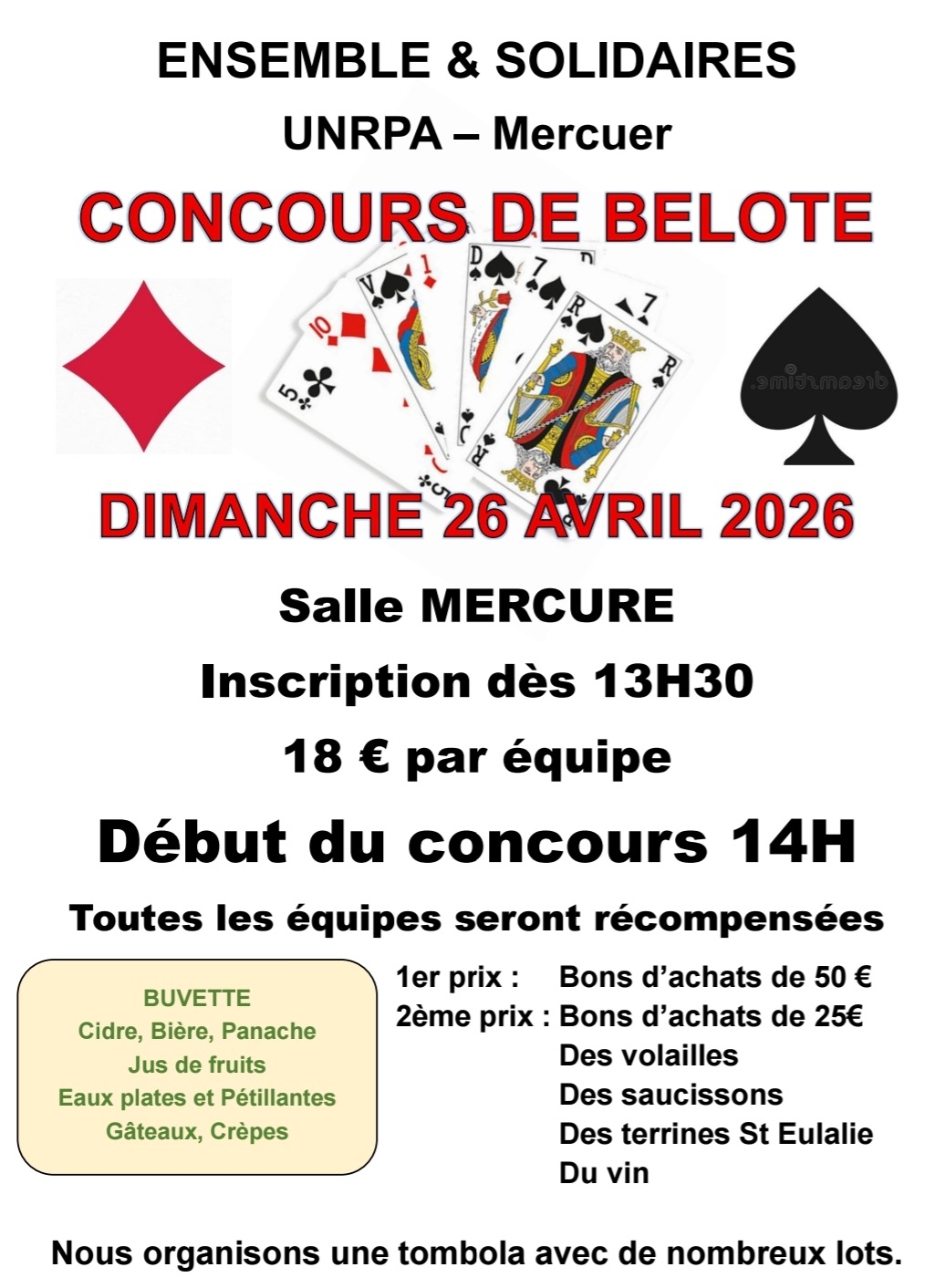 Concours de belote de l’UNRPA, Ensemble et solidaires, ce dimanche après-midi